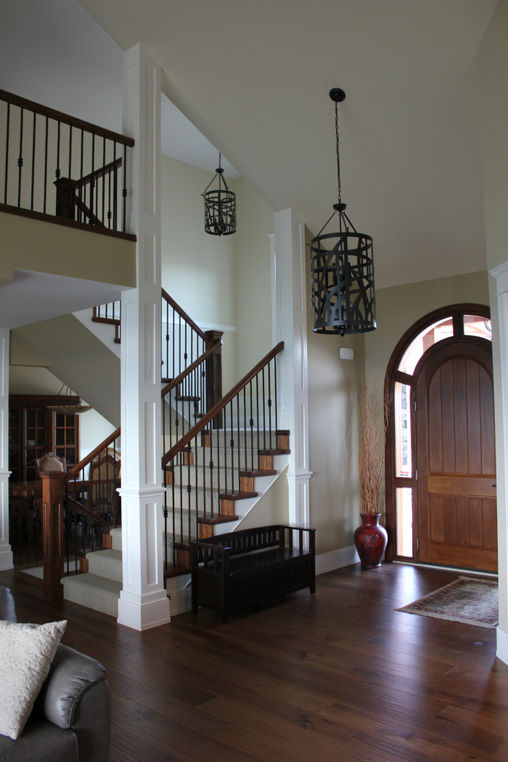 In this home we moved the ensuite to a different location on the top floor and increased the size of the master bedroom, modernized the foyer and staircase, removed the interior walls in the kitchen, replaced all the floors with hardwood and slate and put in a brand new cherry kitchen with granite tops.